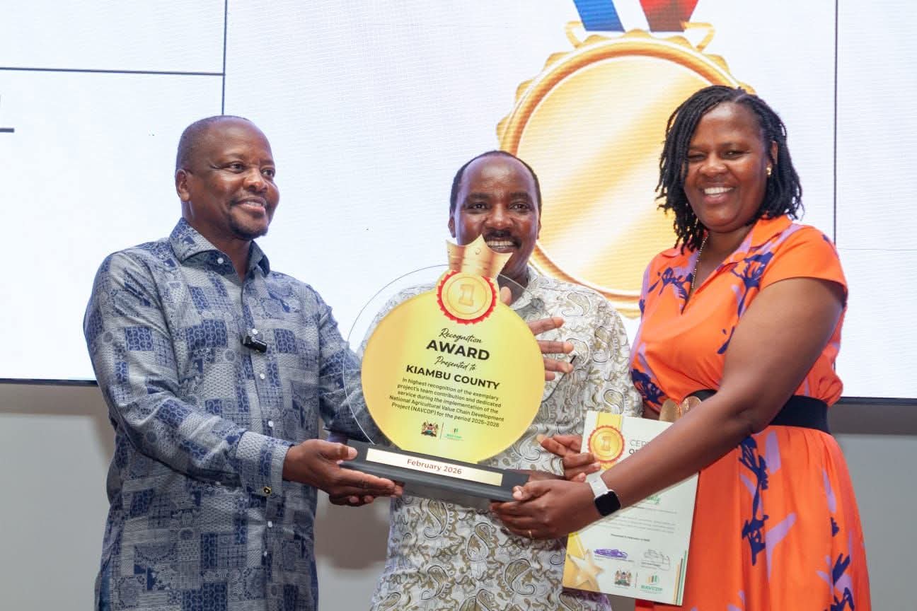 Kiambu County Government, under the stewardship of Governor Kimani Wamatangi, has been recognized as the best-performing county in the implementation of the National Agricultural Value Chain Development Programme (NAVCDP) for the 2025–2026 period, marking a major milestone in the county’s agricultural transformation agenda.