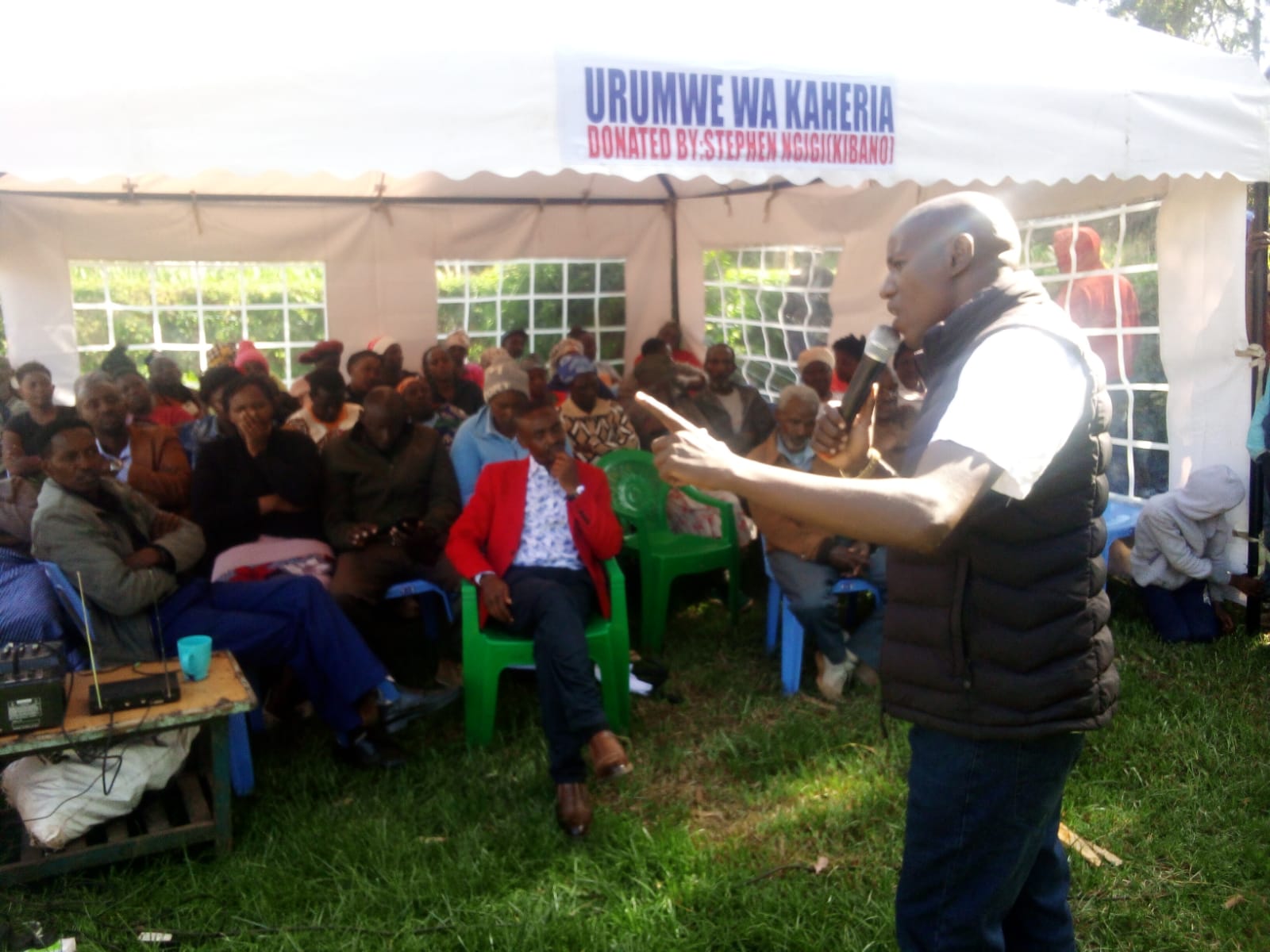 The MCA aspirant spoke at Kaheria village in Gitithia location when he donated a tent with it 50 seats to Urumwe wa Kaheria Community Group.