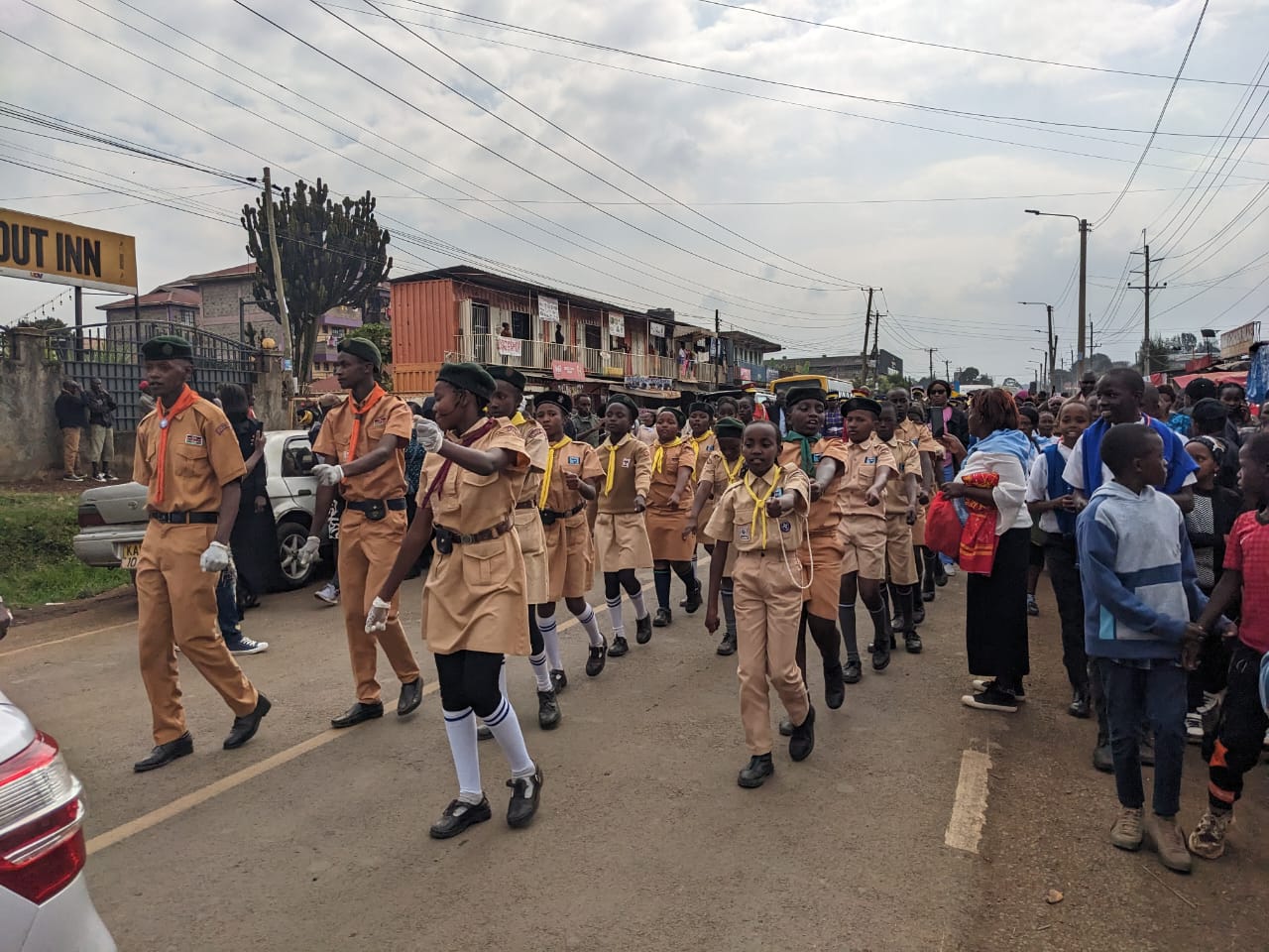 Hundreds of scout and other pupils marching in Ndumberi during Bridget Njoki burial ceremony